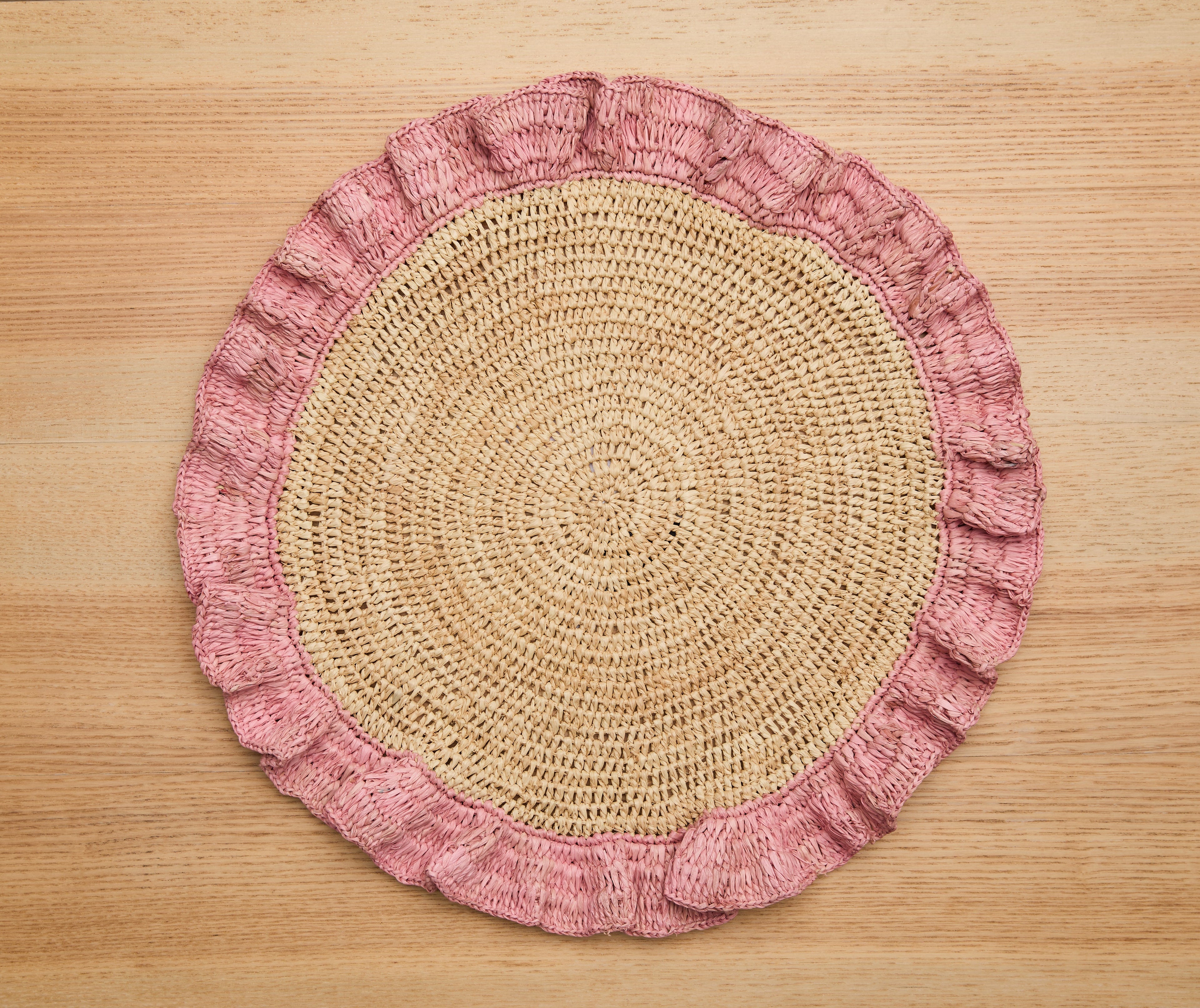 Handwoven Raffia Ruffle Placemat – Boho Chic Table Décor – Summer Table Accent -