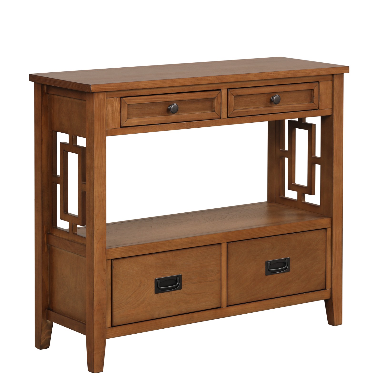 36'' Farmhouse Pine Wood Console Table Entry Sofa Table with 4 Drawers & 1 Storage Shelf (Brown)