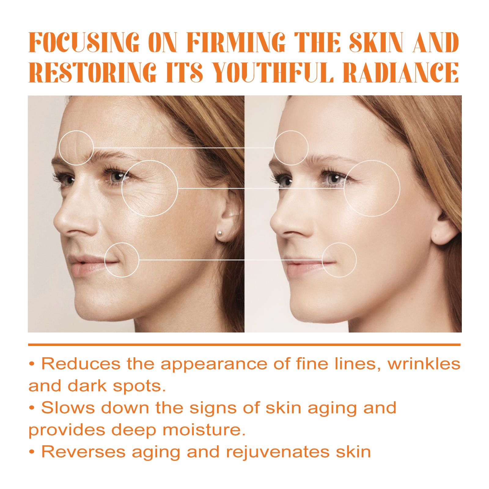Our Anti-Aging Whitening Vitamin C serum contains niacinamide, vitamin C, and hyaluronic acid. It can help lift the face with aging skin, reduce wrinkles, tighten loose skin and make the smile younger. Reduce collagen production and relax skin; The cream penetrates the dermis and regenerates collagen. Its use method is very simple: after cleansing and toning, take 1-2 pumps of essence in the palm, evenly apply on the face and neck skin, gently massage with the hand to absorb. Use daily for better results. Reduces wrinkles and fine lines, strengthens skin firmness and hydration, and increases shine and brightness.
