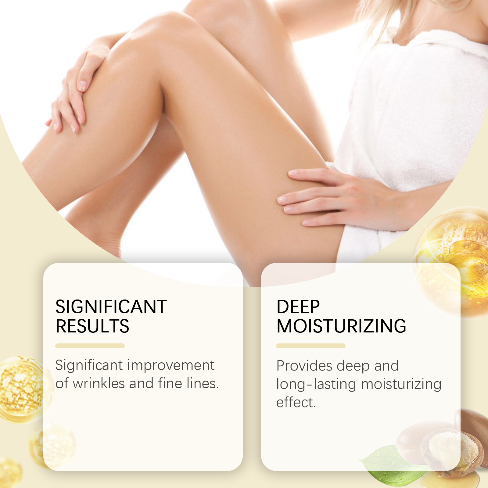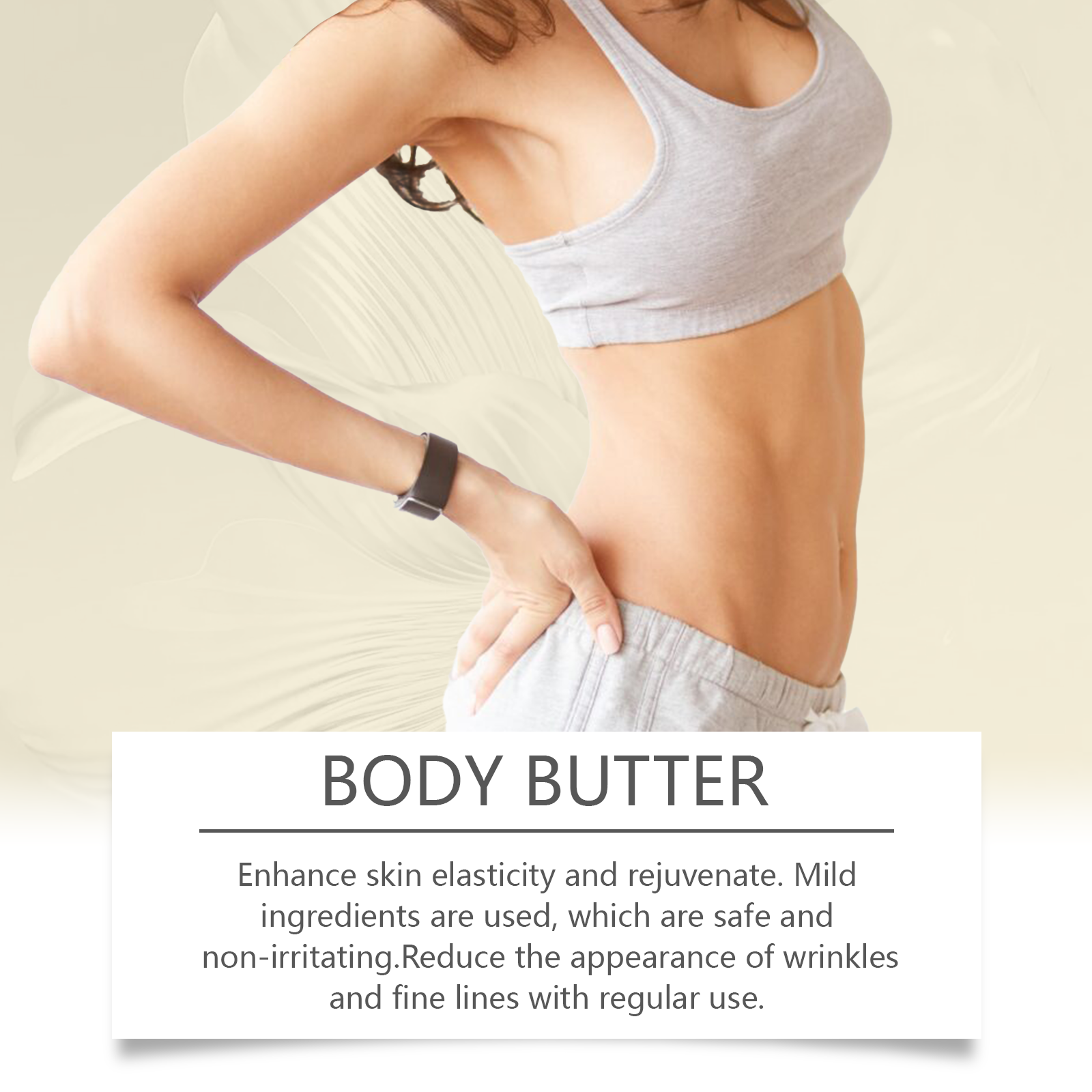 Our body moisturizers contain collagen, shea butter, and acetyl tripeptide-1. It can significantly improve wrinkles and fine lines. Provides deep and long-lasting moisturizing effect. Its use method is very simple: take the right amount of this product, gently massage, promote absorption. Apply this product evenly to buttocks, legs, and completely dry skin. Chest, arms and other parts of the body. And can enhance the elasticity of the skin, rejuvenating. It uses mild ingredients that are safe and non-irritating. Regular use can reduce the appearance of wrinkles and fine lines.