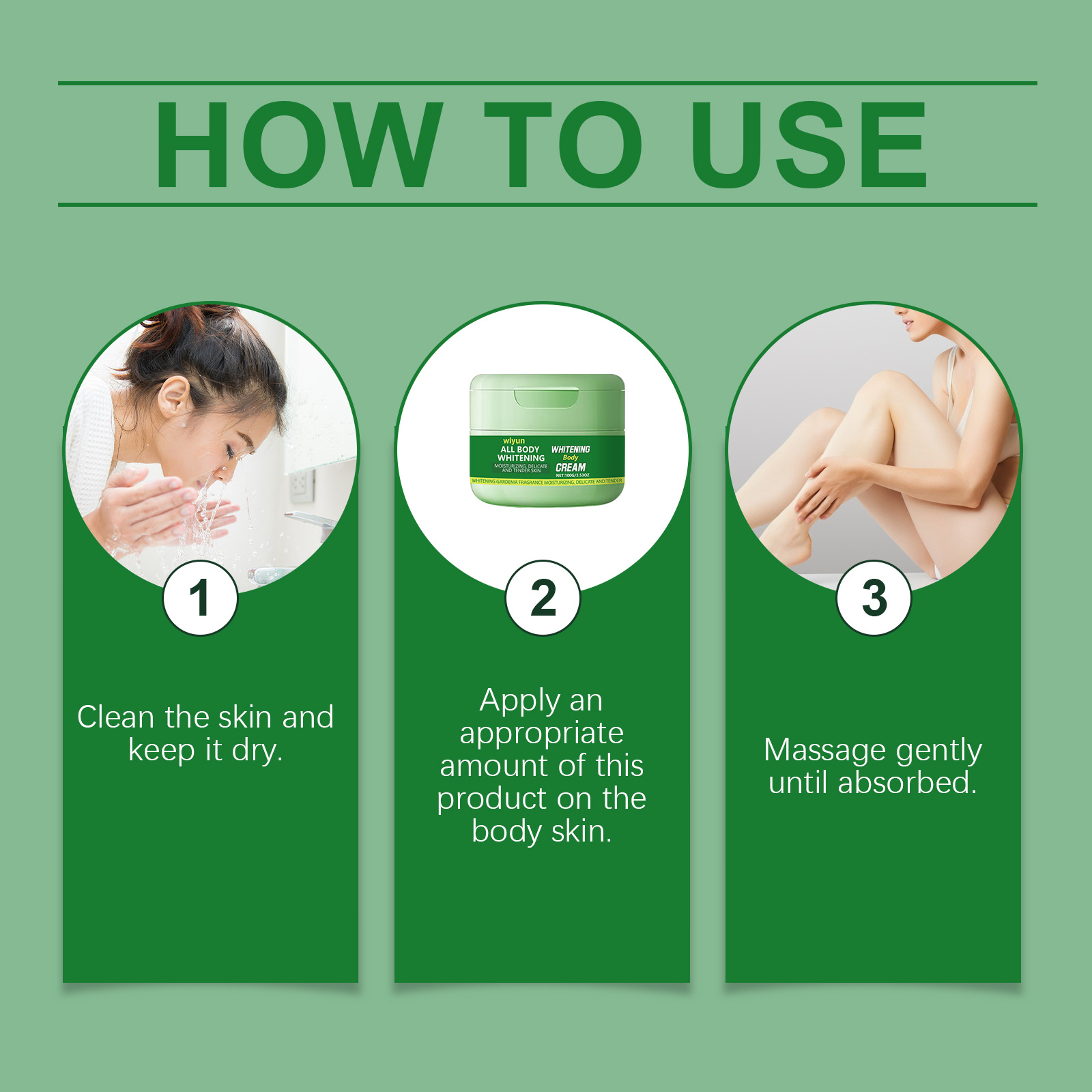 Our body moisturizer contains hyaluronic acid, vitamin E(tocopherol). It can reduce uneven skin tone and make skin whiter and brighter. The way to use it is simple: clean the skin and keep it dry. Apply appropriate amount of this product to the skin. Gently massage until absorbed. And it can keep the skin soft and elastic for a long time, and adapt to the moisturizing needs of different seasons.