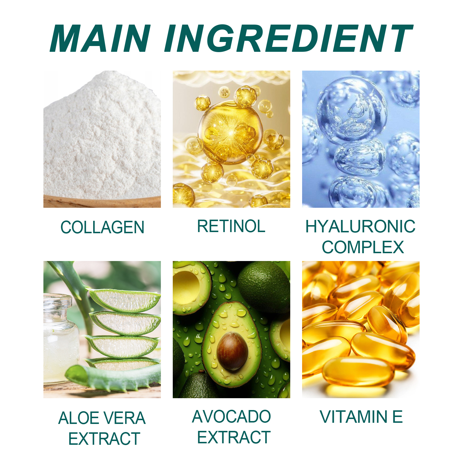 Our Collagen retinol facial moisturizer contains a collagen, retinol, hyaluronic acid complex. It can help reduce fine lines and crow's feet. Tighten your neck, face, or loose skin. Its use method is very simple: 1. After cleansing, apply appropriate amount evenly on the face; 2. Gently massage with fingertips from bottom to top until absorbed. Containing three powerful ingredients of retinol hyaluronic acid and collagen, it helps to reduce wrinkles, restore skin elasticity and provide smooth results. It deeply moisturizes your skin and makes your skin look bright and smooth.