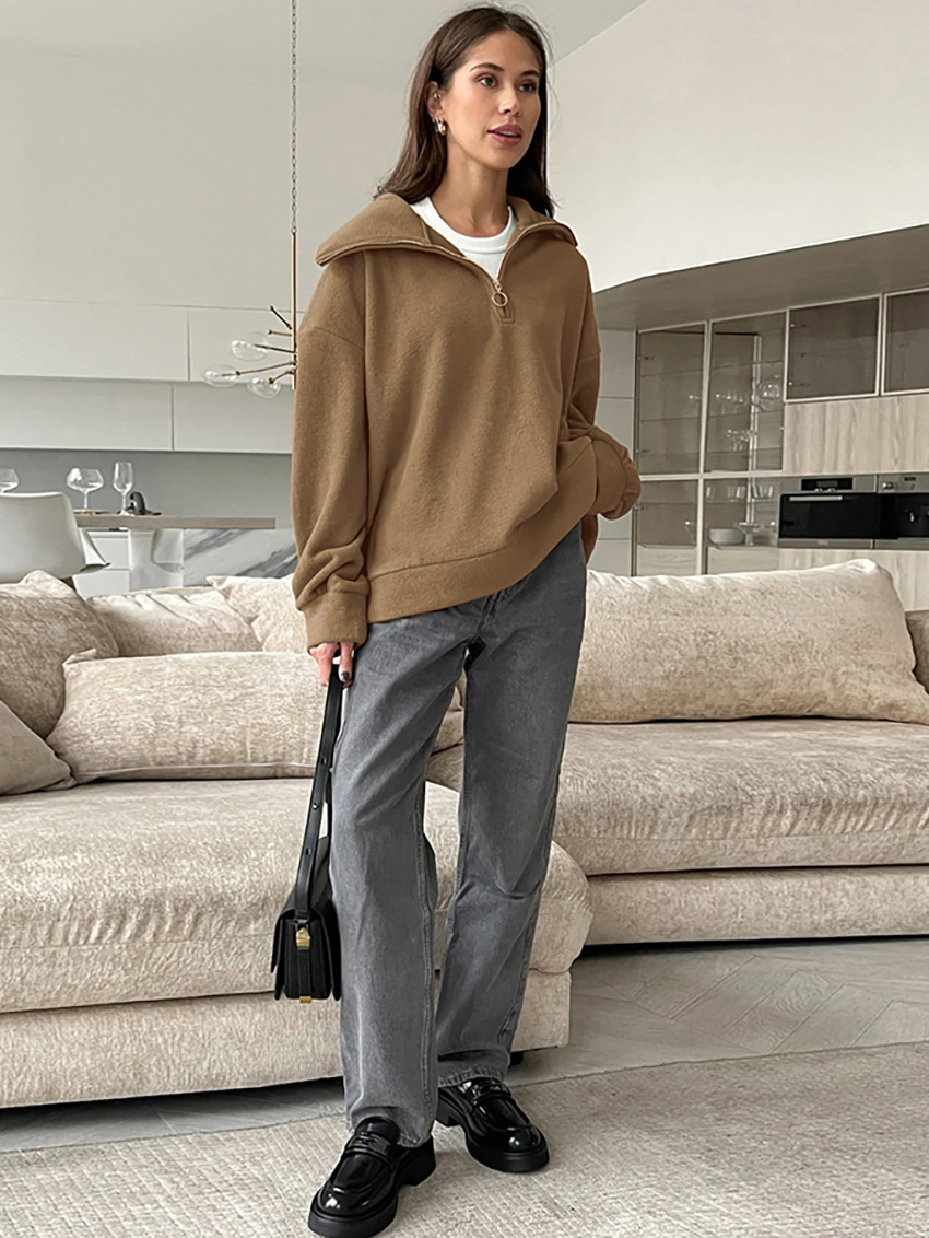 European and American zipper collar top fashionable and versatile sports hoodie