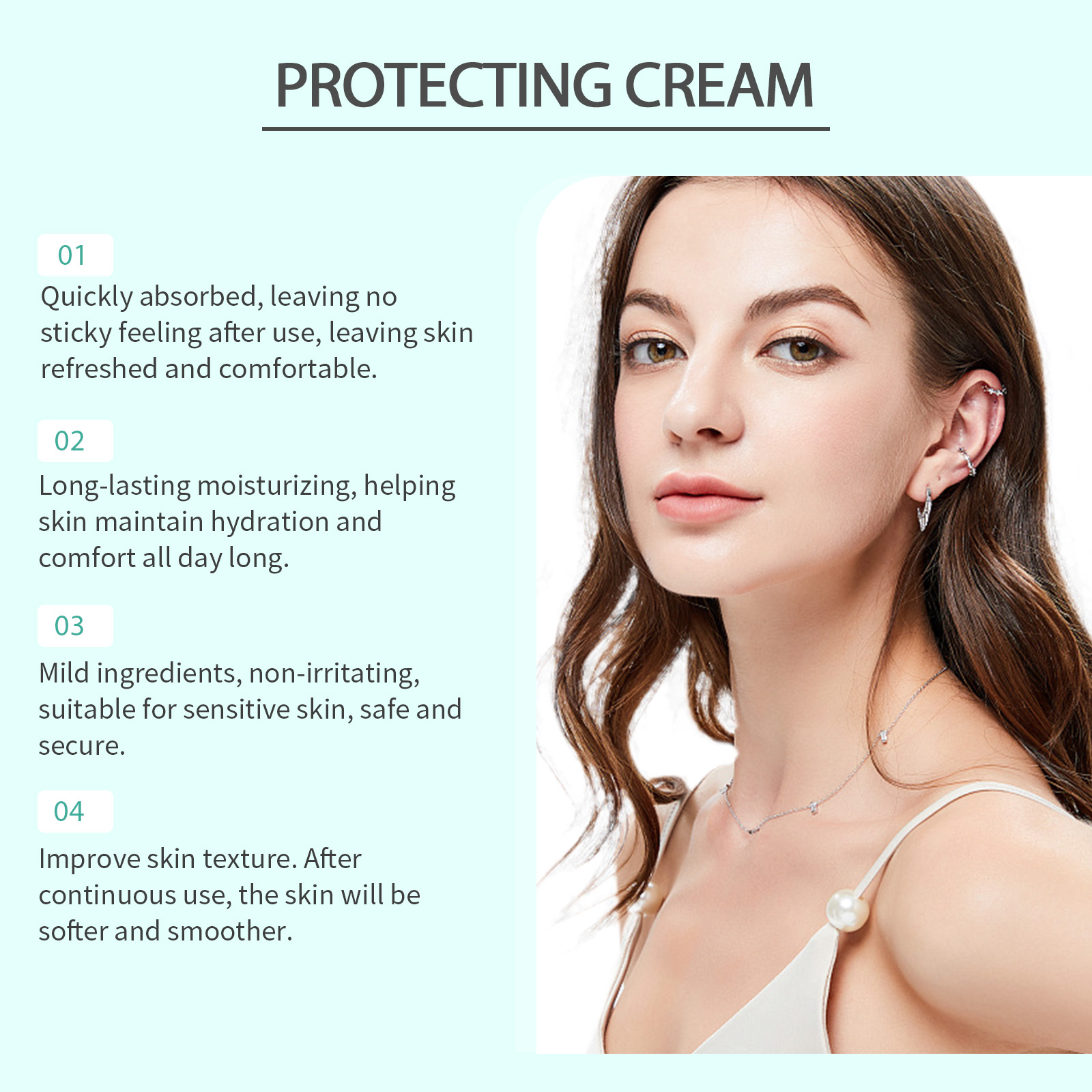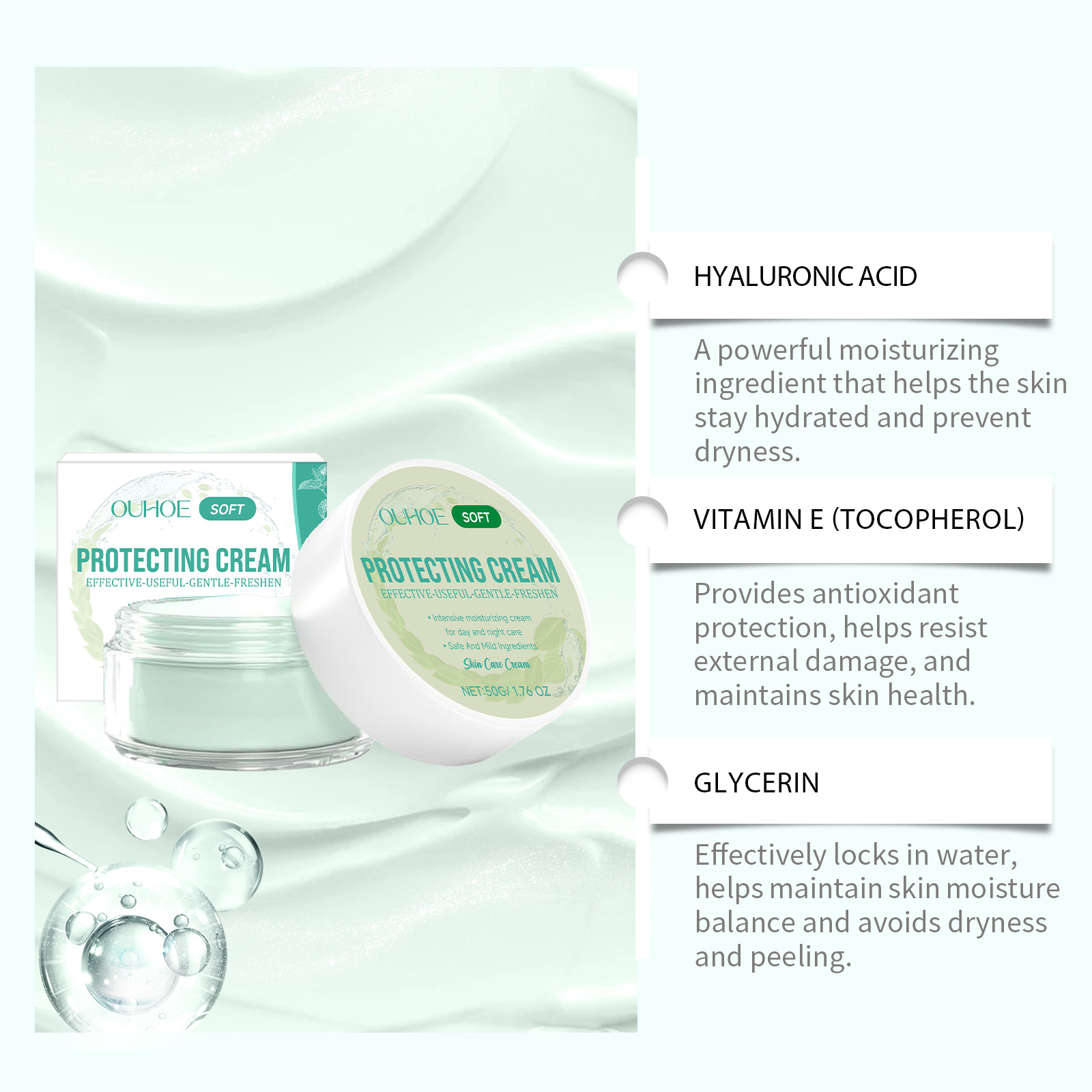 Our facial moisturizer contains glycerin and peppermint extract. It protects the skin from the environment and keeps it healthy. The way to use it is simple: clean facial skin: keep skin dry. Apply appropriate amount of this product evenly on the face. Gently massage until absorbed.