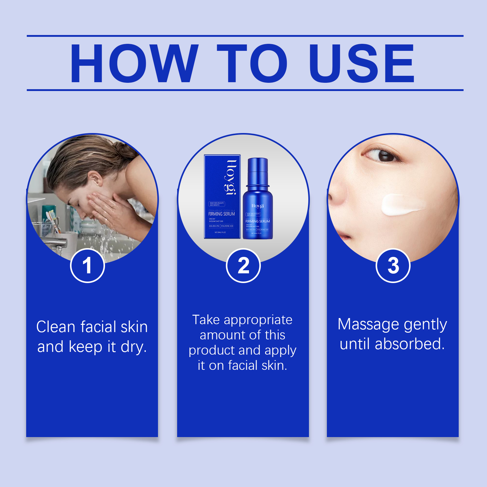 Our firming serum contains lactic acid, salicylic acid, lactonic acid. It can help remove dirt and oil from deep within the skin, prevent pores from clogging, and keep the skin clean. Its application method is simple: 1. Clean facial skin and keep it dry. 2. Apply appropriate amount to face. 3. Gently massage until absorbed. Salicylic acid helps to close the pores, reduce the problem of enlarged pores, and make the skin more delicate and smooth.