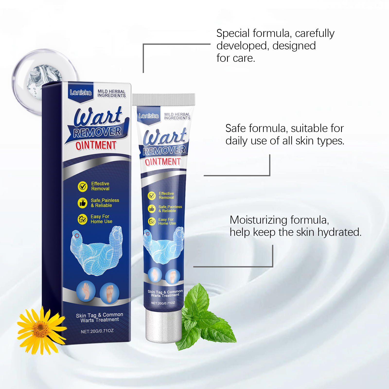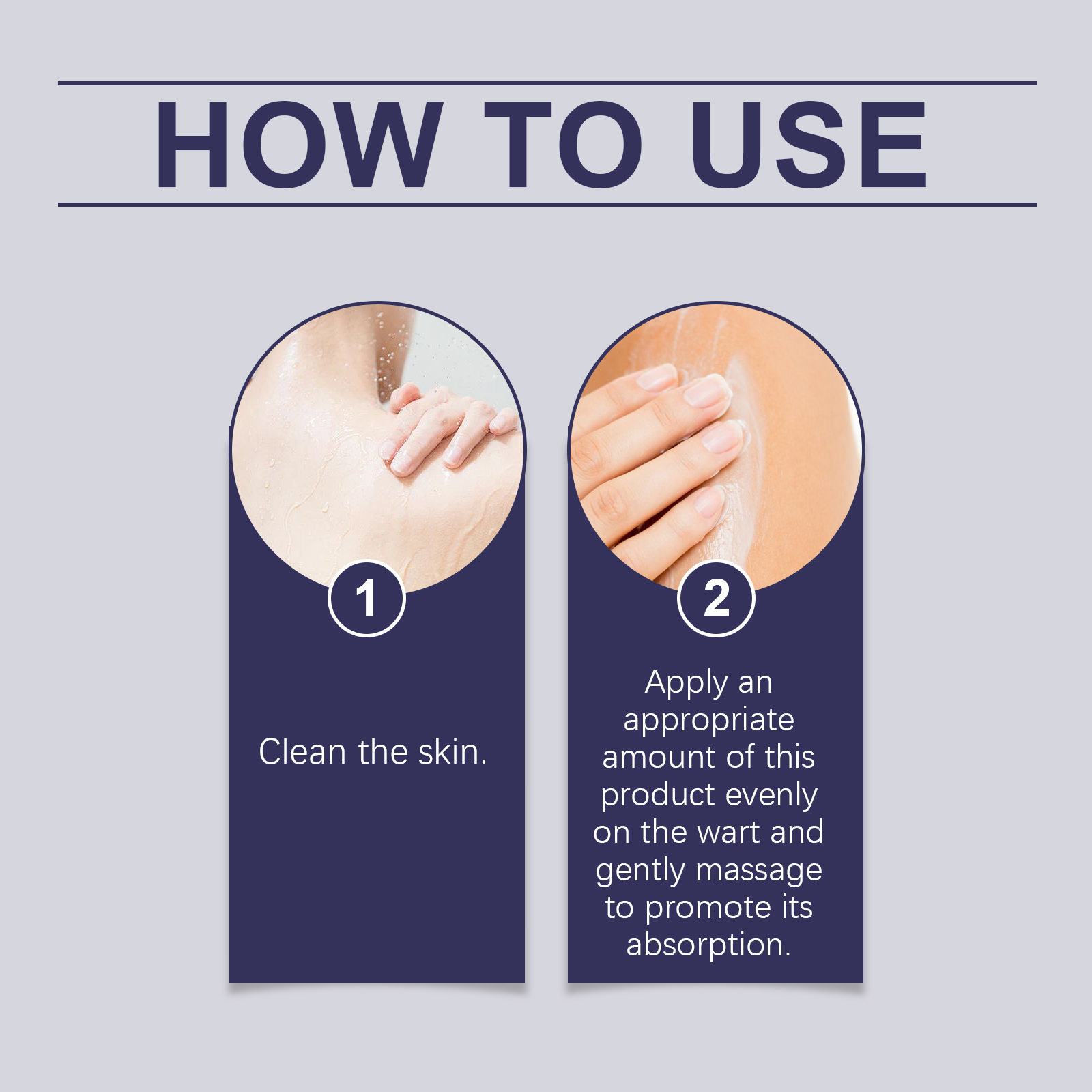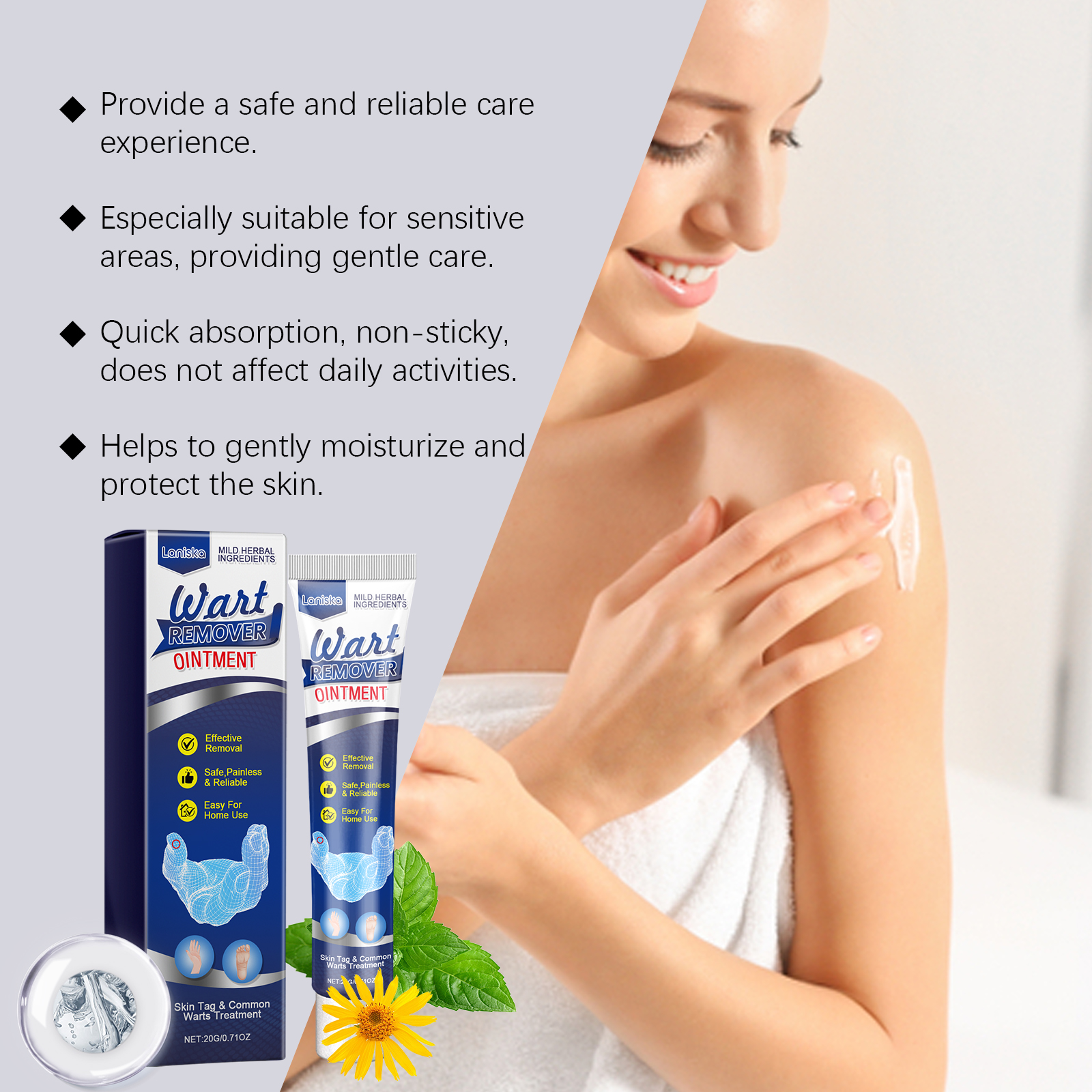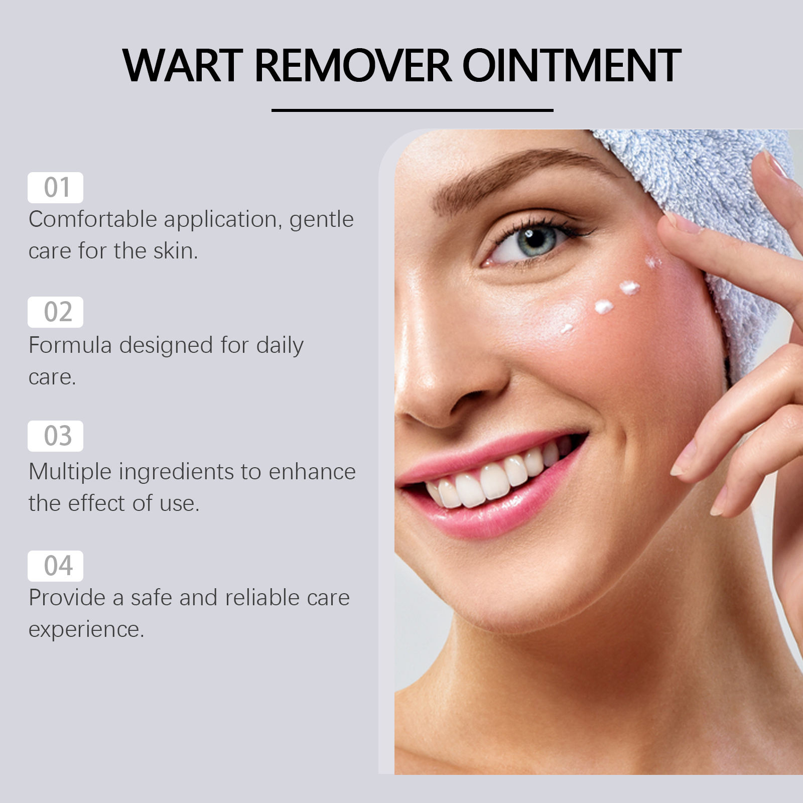 Our Kew cream contains arnica and mint leaves. It gently removes warts without irritating the skin. Soft texture and easy to disperse, bring comfortable use experience. The way to use it is simple: clean the skin. Apply proper amount of this product to the wart with a spoon and gently massage to promote its absorption. And can enhance the care effect, suitable for a variety of skin types.