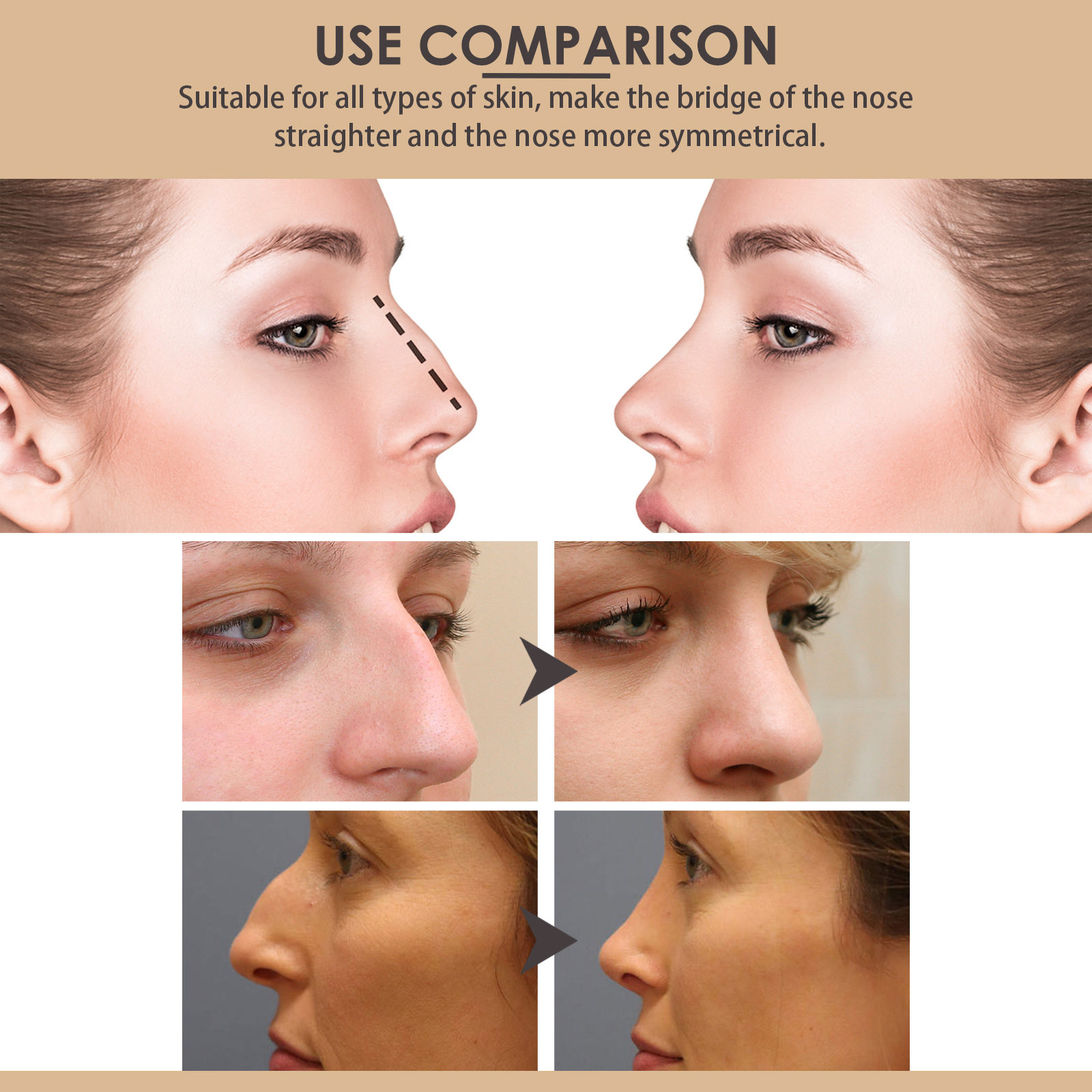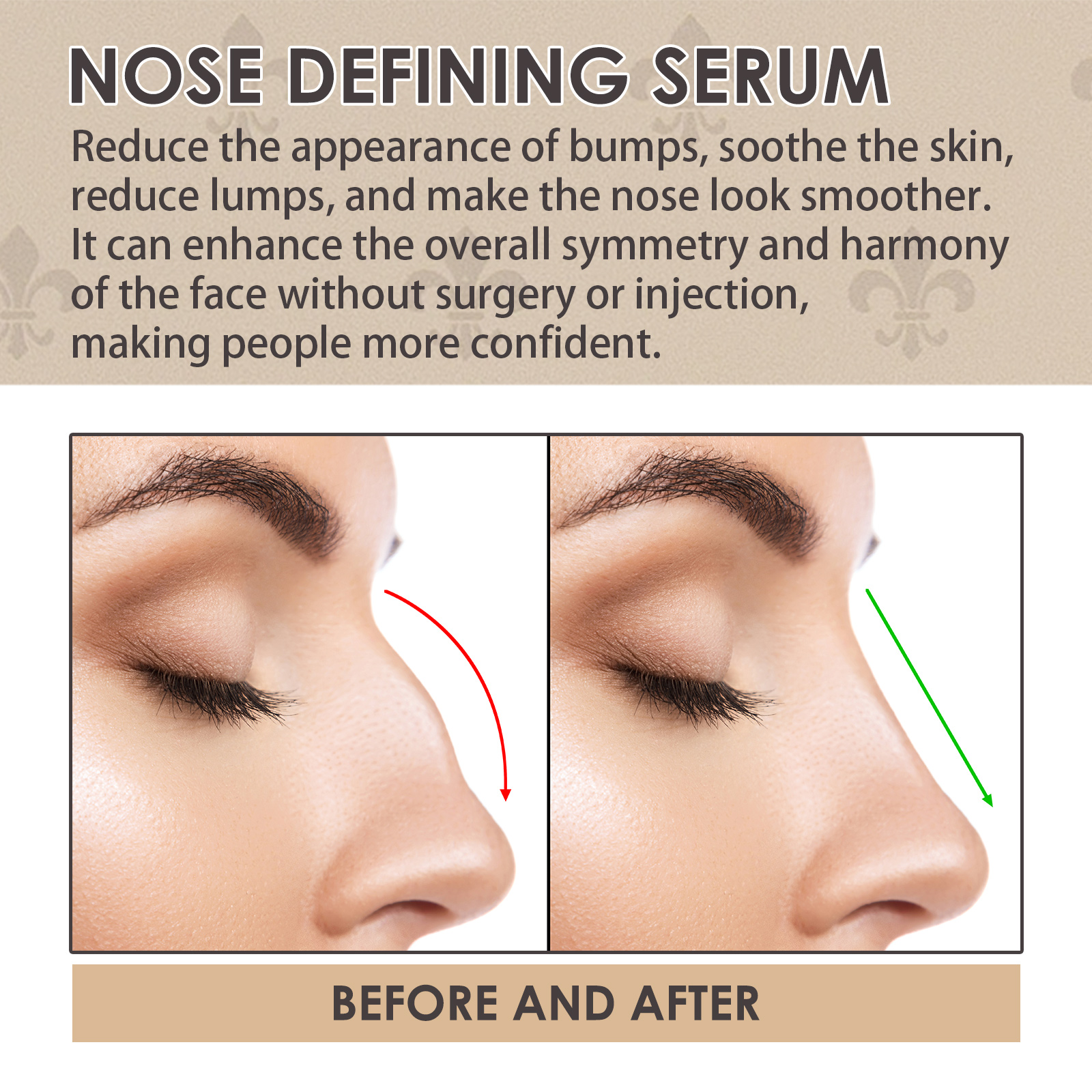 Our nose styling serum contains hydrolyzed collagen, acetyl hexapeptide-8, and Jojoba oil. It reduces the appearance of lumps, soothes the skin, reduces lumps, helps to increase the clarity and support of the bridge of the nose, and makes the nose look smoother. Enhance the overall symmetry and harmony of the face without the need for surgery or injections, making one more confident. Its application method is very simple: clean and dry the skin of the nose, apply an appropriate amount of serum evenly on both sides of the bridge of the nose, massage gently with your fingertips until absorbed, and finally rinse with warm water. Improve the shape and outline of the bridge of the nose, enhance the clarity and symmetry on both sides of the nose, and make the appearance more refined.