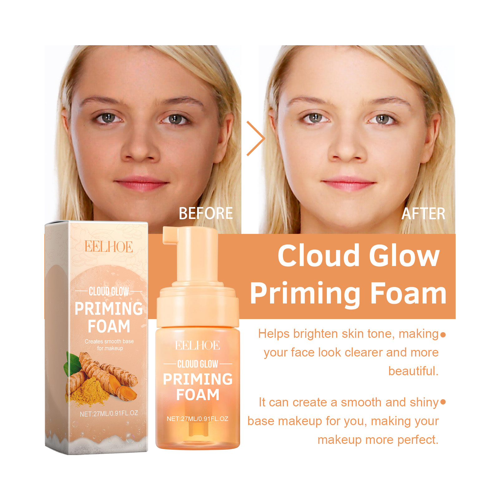 Our mousse toner contains coconut oil and apricot fruit extract. It rehydrates the skin and keeps facial skin hydrated and soft, keeping makeup fresh for a long time. Its use is simple: after cleansing and conditioning, apply it directly to the face, extract it with your fingertips and continue to apply makeup on the back of your hand. And can create a smooth and glossy base makeup for you, so that your makeup is more perfect.