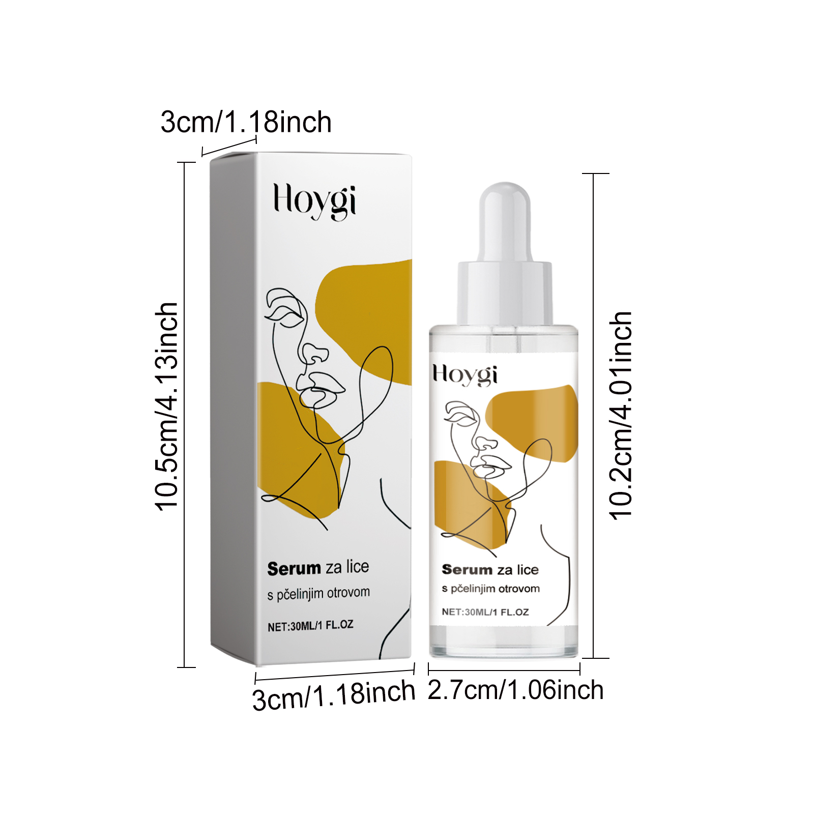 Our Serum Za Lice S Pčelinjim Otrovom contains Glycerin, Bee Venom, Camellia Sinensis Leaf Extract. It can reduce the production of wrinkles and fine lines, and enhance skin elasticity and firmness, delay the skin aging process, and restore your skin. The way to use it is very simple: wash and dry your hands, apply 2-3 drops of serum to your clean face, and gently massage until absorbed. It can deeply moisturize skin and make skin soft and smooth.