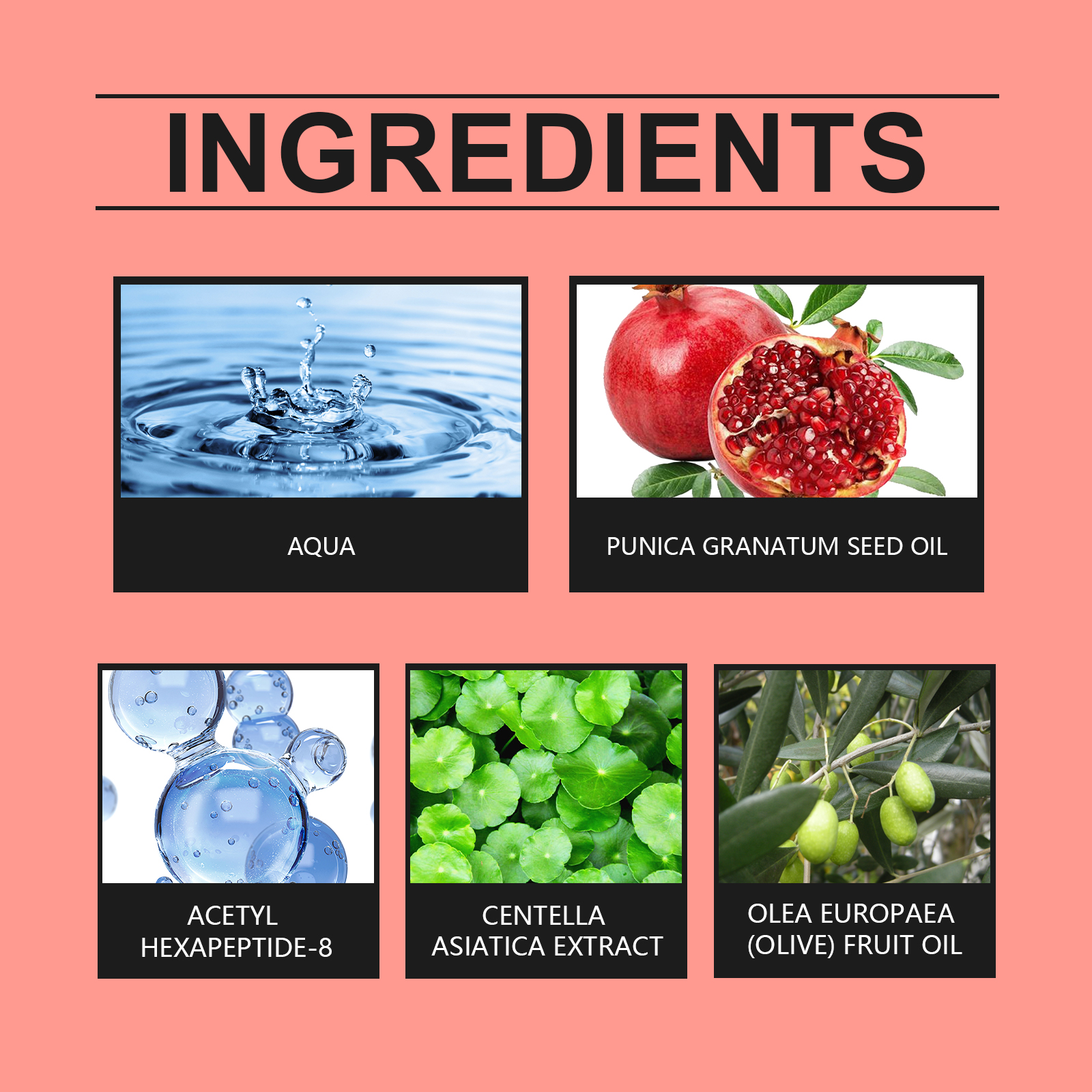 Our volumizing face serum contains centella asiatica extract, olive oil. It acts as an antioxidant and protects the skin from the outside world. Its application method is very simple: clean and dry the face, apply appropriate amount of this product evenly on the face, gently massage until absorbed. It can also provide antioxidant protection to the skin and enhance skin vitality.