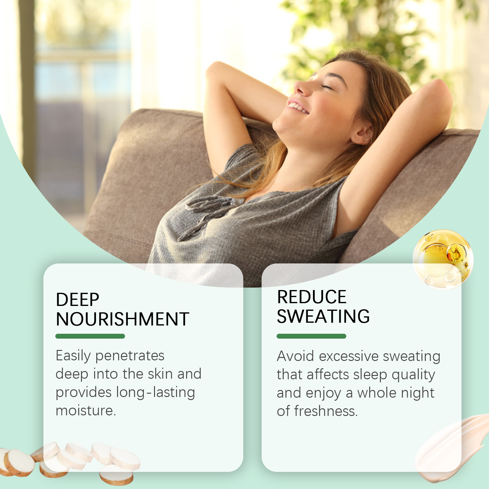 Our wild yam body moisturizer contains glycerin and wild yam root extract. It can easily penetrate into the skin and provide lasting moisturization. Avoid excessive sweating that can interfere with your sleep quality and enjoy a fresh night. The way to use it is simple: clean the skin and keep it dry. Take a proper amount of the cream and apply it evenly to the skin. Massage gently in circular motions to fully absorb. And can be used after the skin will be smooth and delicate, skin will glow.