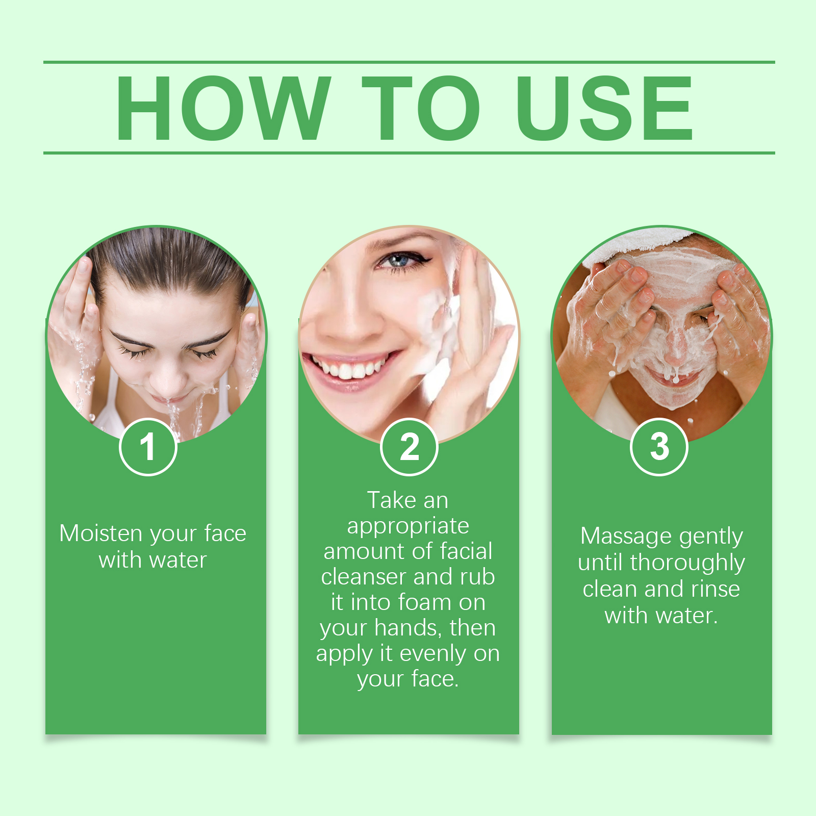 Our gentle moisturizing cleanser contains tea leaf extract, vitamin E(tocopherol). It can regulate the skin oil secretion, say goodbye to oily luster. The way to use it is simple: wet the face with water. Take an appropriate amount of facial cleanser, lather it into your hands, and then apply it evenly to your face. Massage gently until thoroughly cleaned and rinse with water. And mild and non-irritating, suitable for all skin types.