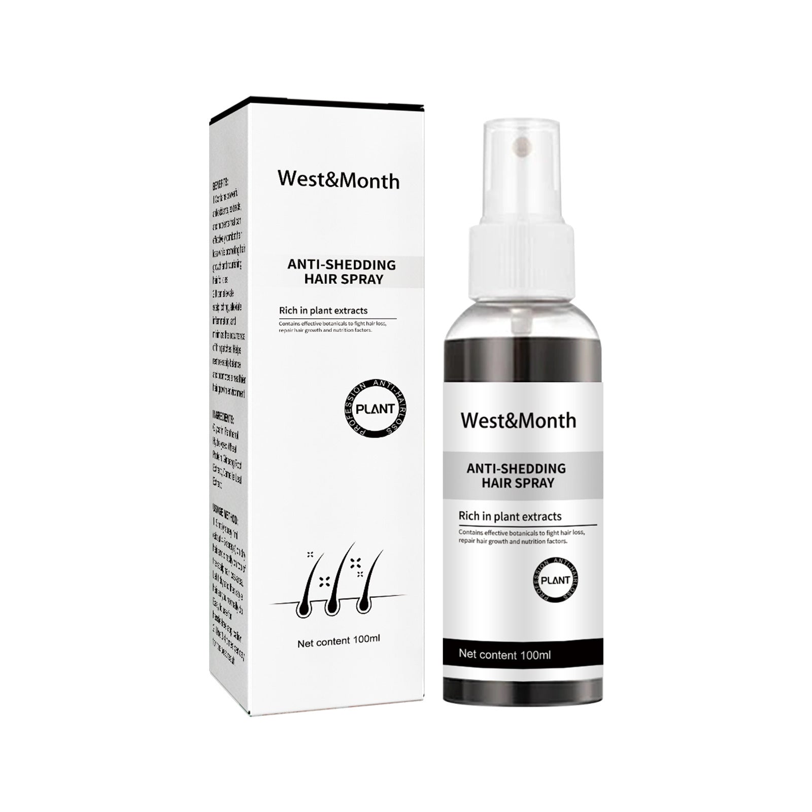 West & Month Anti-Shedding Hair Spray, Improve The Hairline Hair Hair Nutrition Moisture Hair Roots -