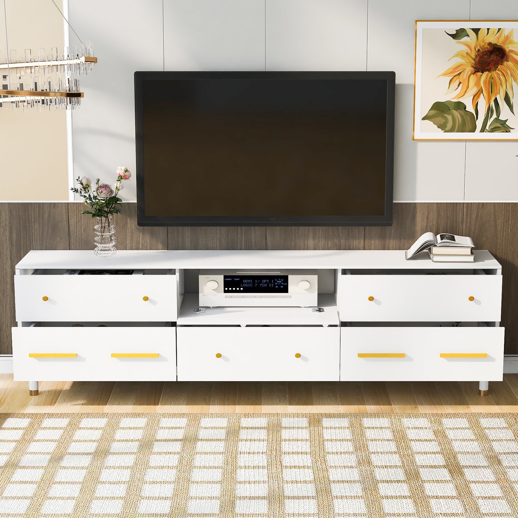 White TV Stand for Living Room Modern Entertainment Center Stand for TV Up to 90 Inch -