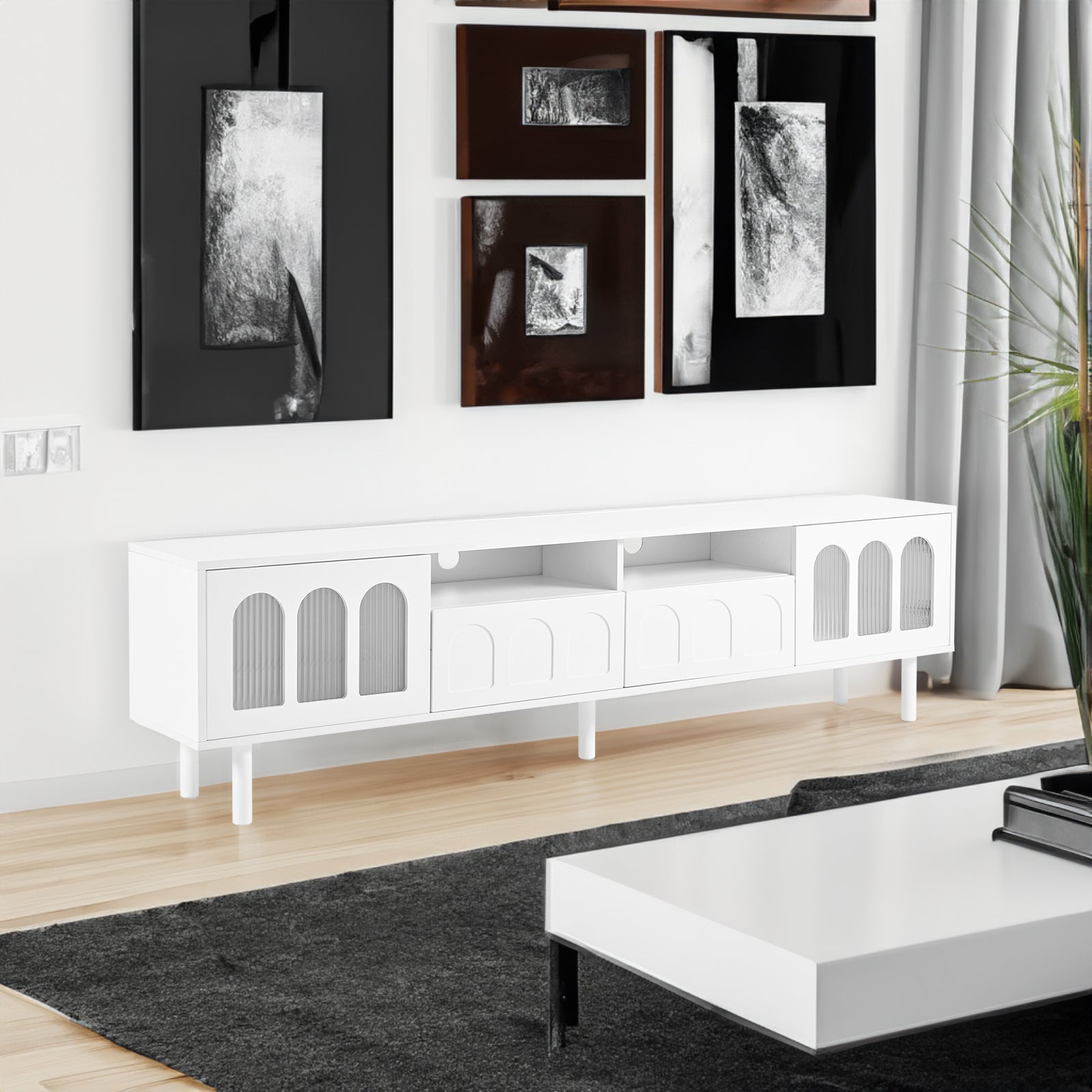 Modern TV Stand for 80'' TV with Double Storage Space -