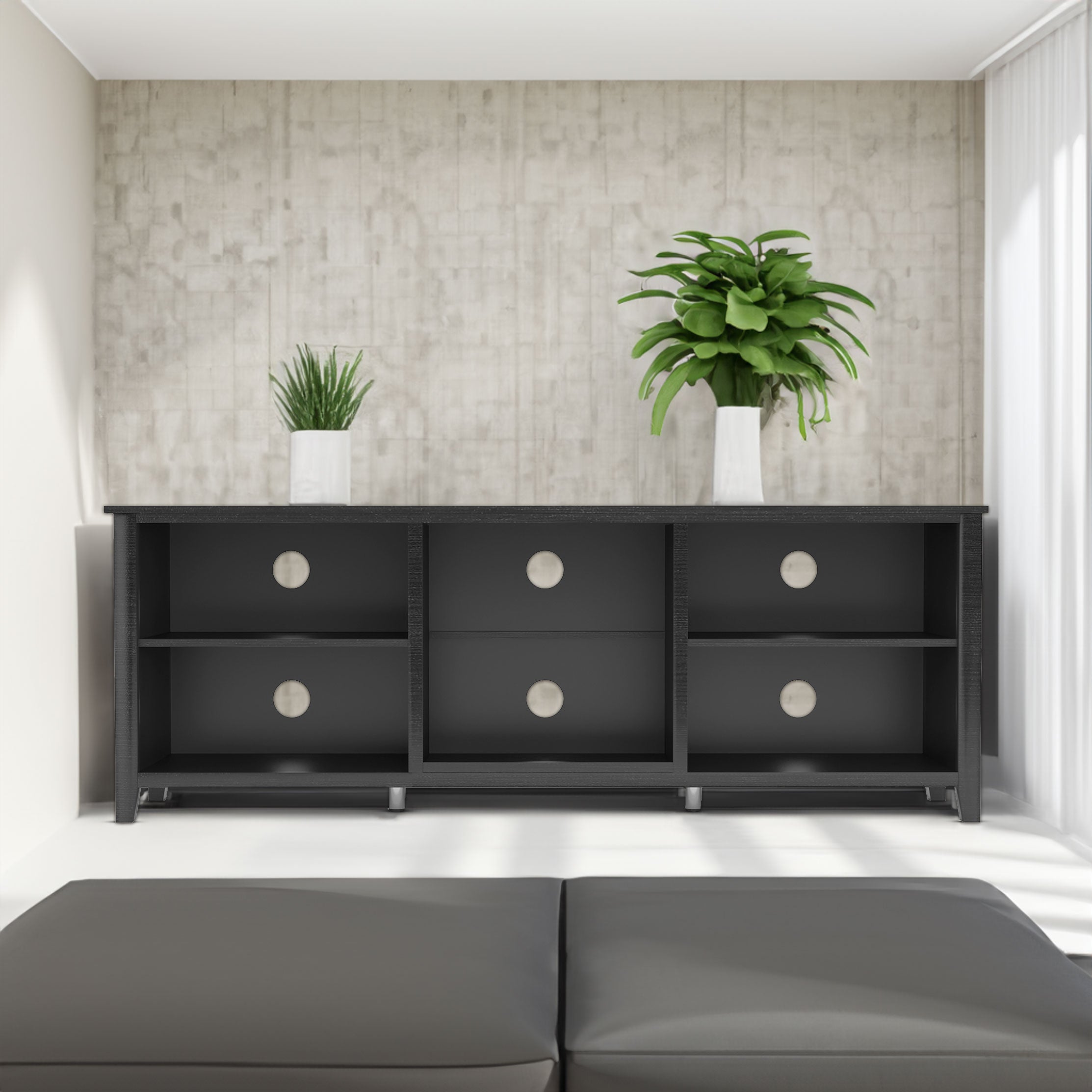 TV Stand Storage Media Console Entertainment Center Tradition Black with doors -