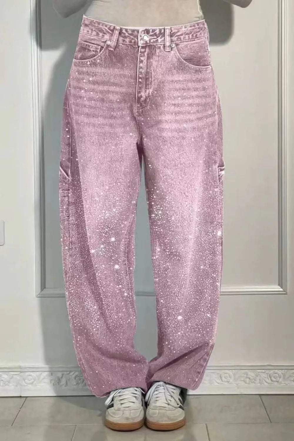 Full Size Washed Rhinestone Detail Wide leg Jeans Plus Size -
